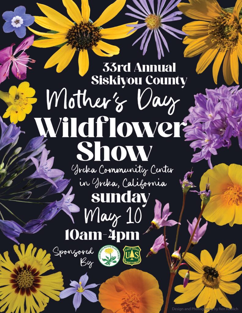 The 33rd Annual Siskiyou County Mother’s Day Wildflower Show takes place Sunday, May 10 at the Yreka Community Center, 810 N. Oregon Street. Hosted by the Klamath and Shasta-Trinity National Forests in partnership with the Shasta Chapter of the California Native Plant Society, the free event runs from 10 a.m. to 4 p.m.