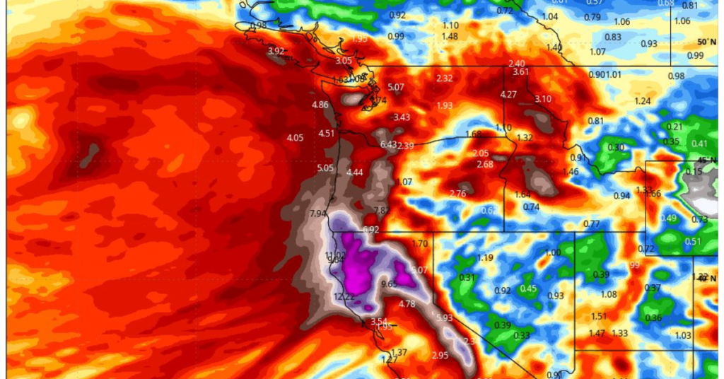 A massive "bomb cyclone" is set to explode off the U.S. West Coast with hurricane force winds, flooding rains, and enormous mountain snow from Category 5 atmospheric river.